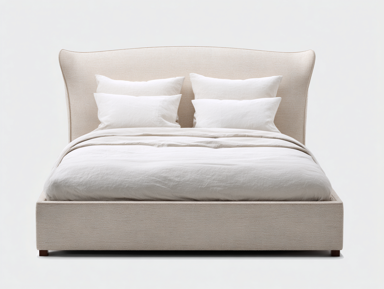 Letto matrimoniale imbottito in tessuto 215x190x125 cm - beige chiaro - testiera sagomata