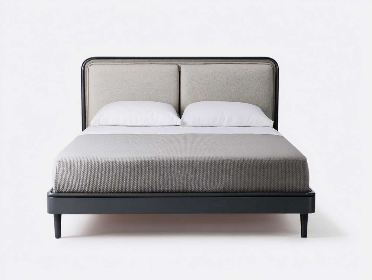 Letto matrimoniale imbottito in tessuto 210x180x115 cm - beige chiaro - design essenziale