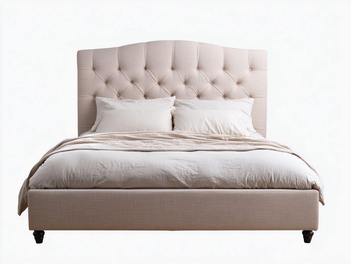 Letto matrimoniale imbottito in tessuto 220x180x130 cm - beige chiaro - testiera capitonné classica