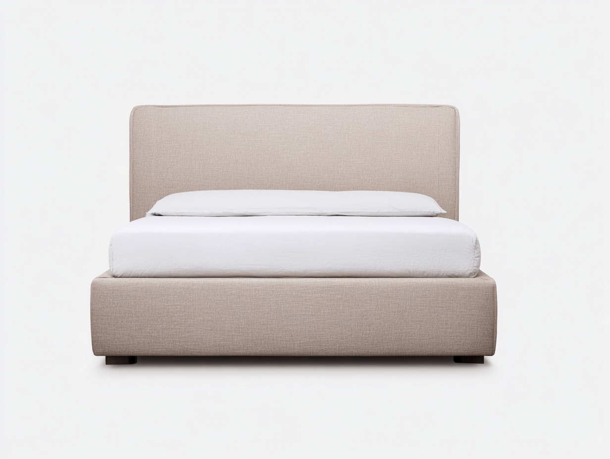 Letto matrimoniale imbottito dal design semplice ed elegante, pensato per arredare la camera da letto con uno stile pulito e contemporaneo. La testiera lineare e proporzionata crea un aspetto ordinato e armonioso, ideale per un ambiente dedicato al riposo.